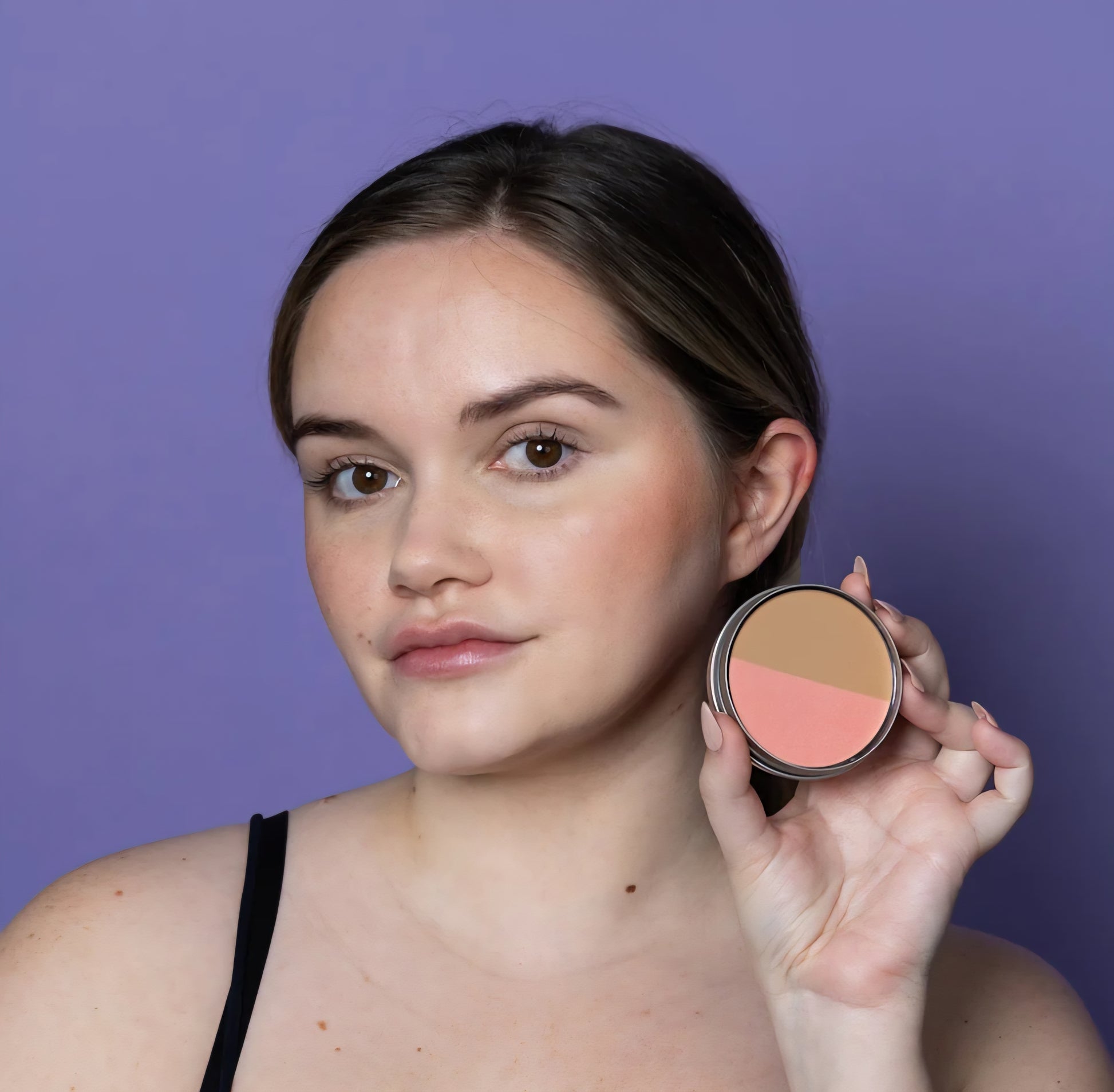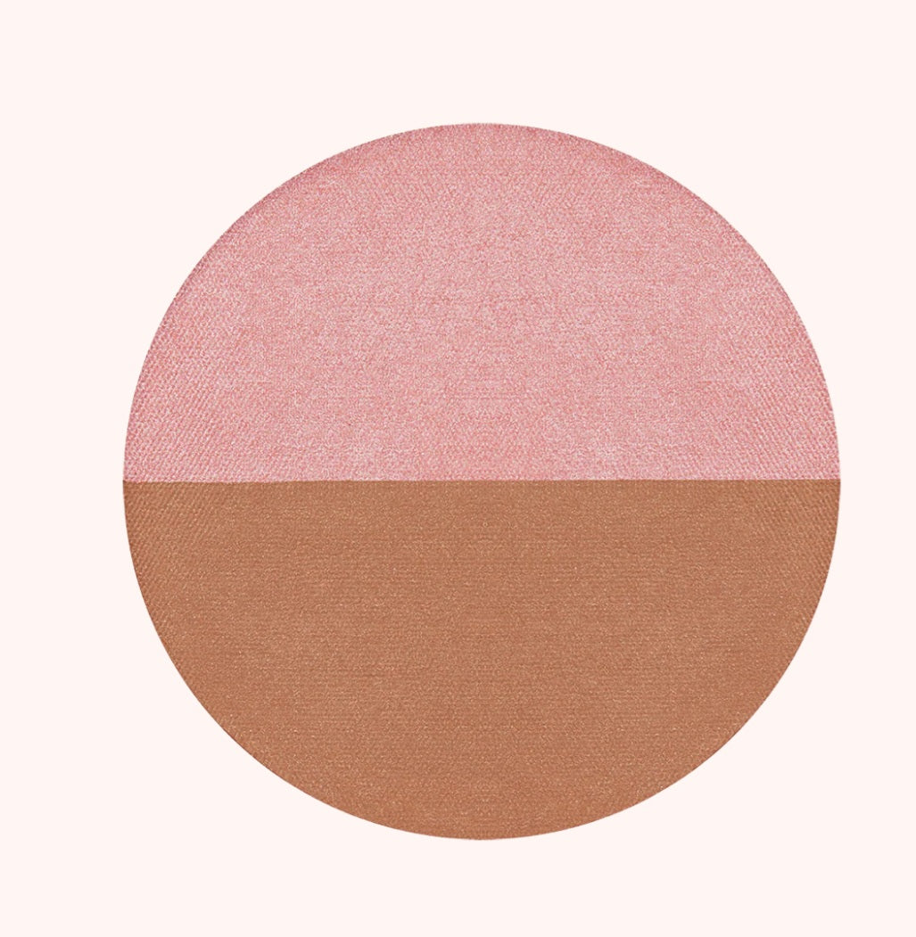 A vegan, talc free blush/bronzer duo with sheer, buildable coverage that leaves the skin looking naturally sun kissed. The pressed powder formula is velvety smooth and weightless, made with sustainably sourced ingredients. These powders can also set cream products while adding a touch of glow.