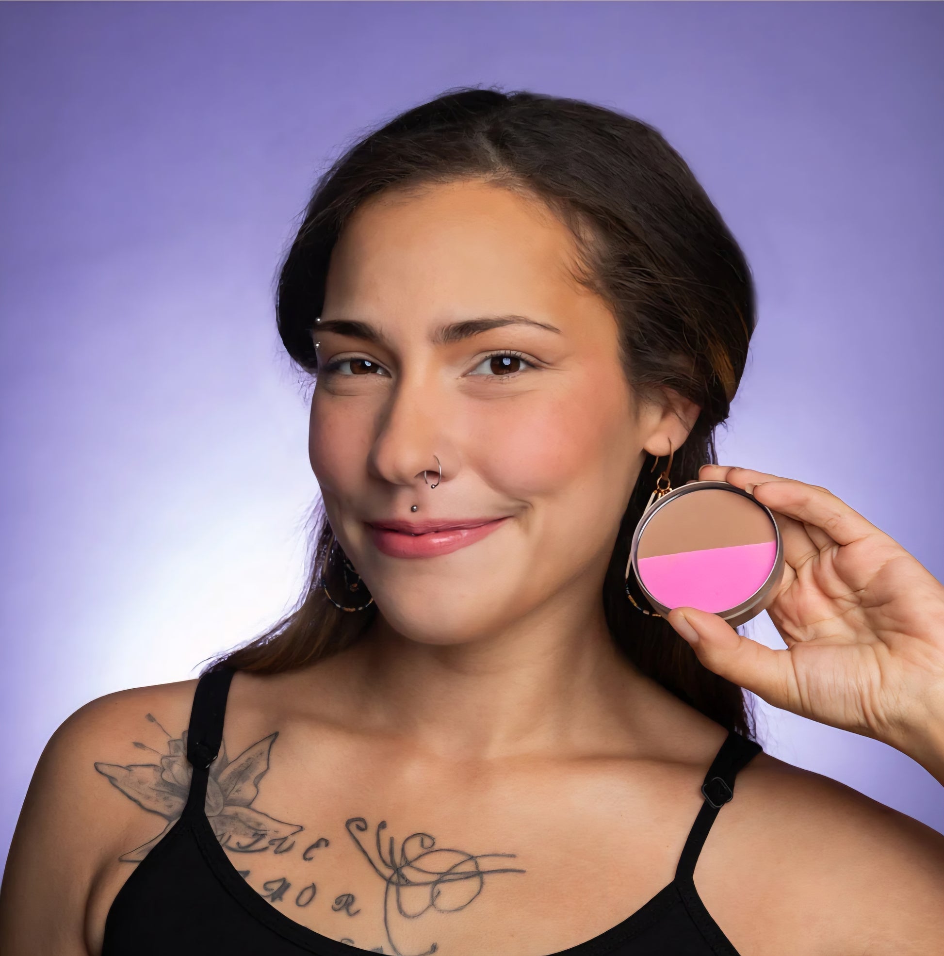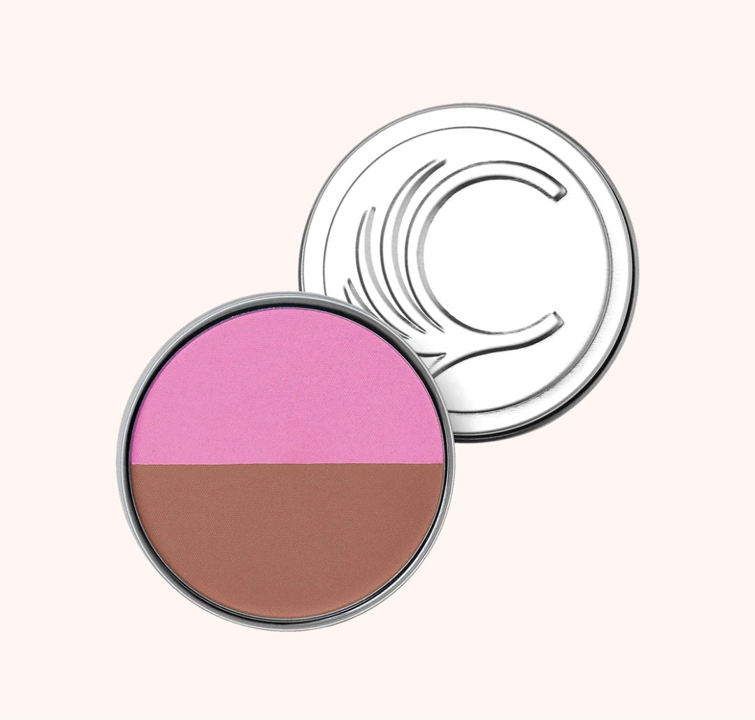 A vegan, talc free blush/bronzer duo with sheer, buildable coverage that leaves the skin looking naturally sun kissed. The pressed powder formula is velvety smooth and weightless, made with sustainably sourced ingredients. These powders can also set cream products while adding a touch of glow.