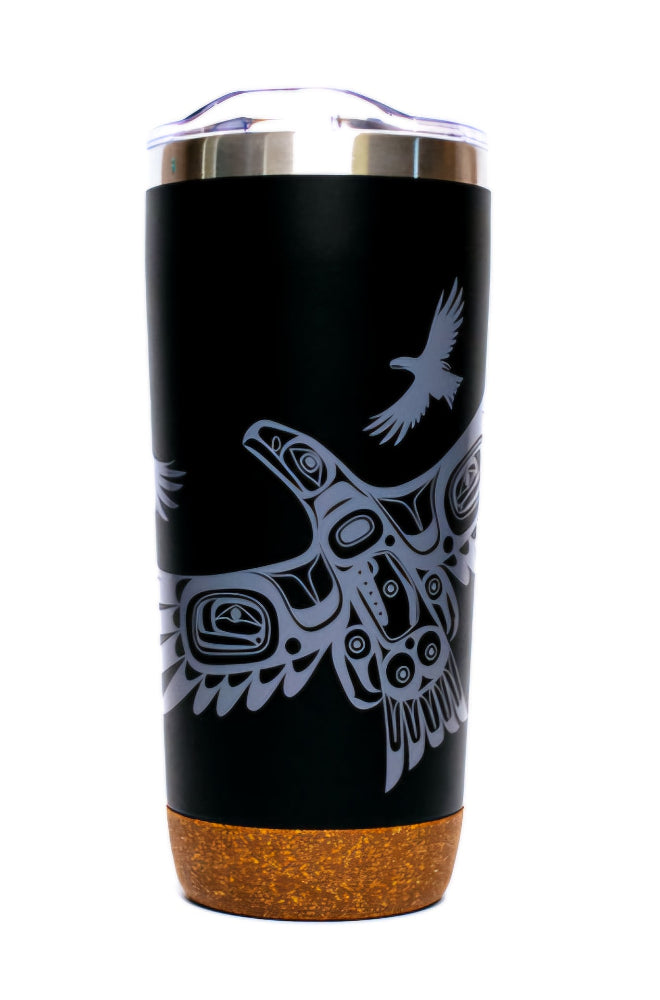 Cork Base Travel Mug - Soaring Eagle by Indigenous Artist Corey Bulpitt