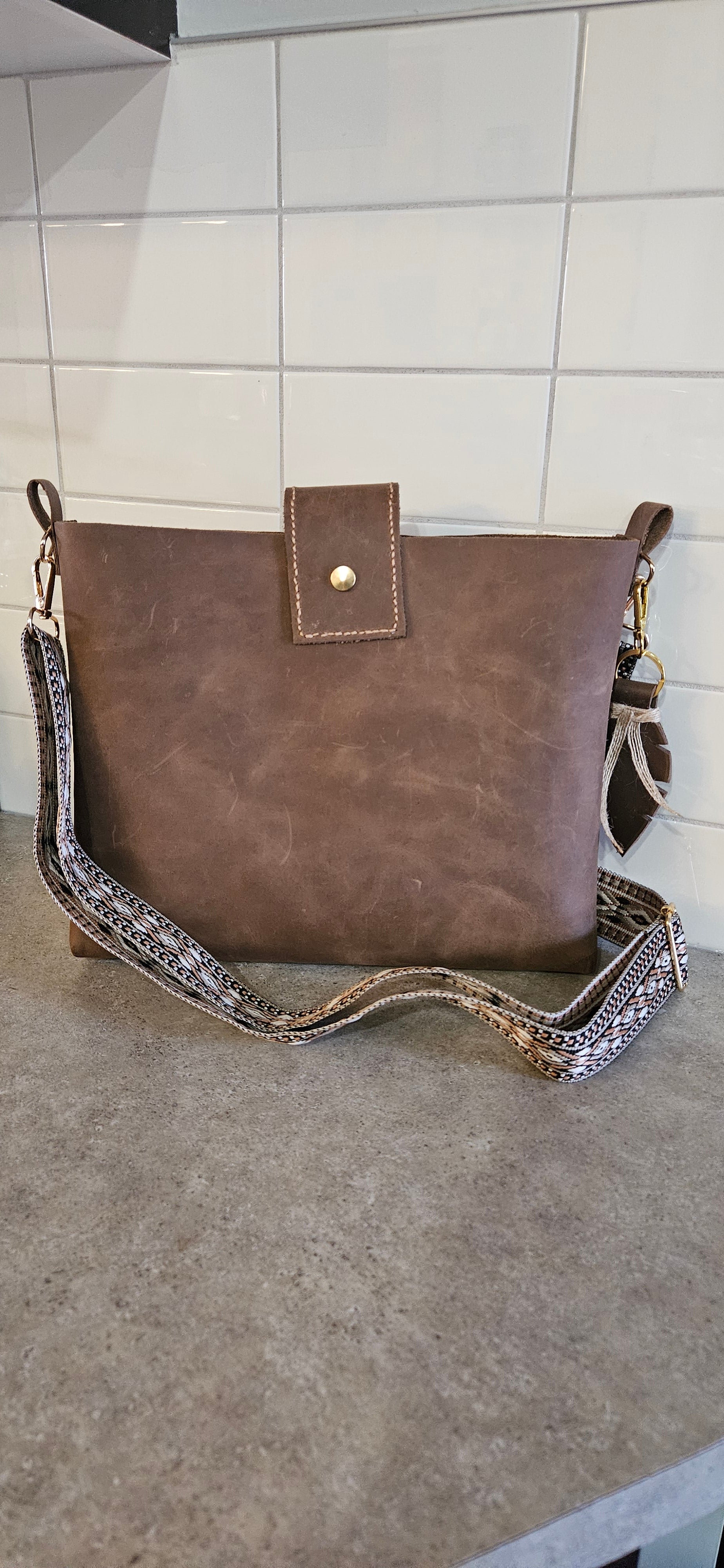 Top Grain Leather with raw edges and hand sewn