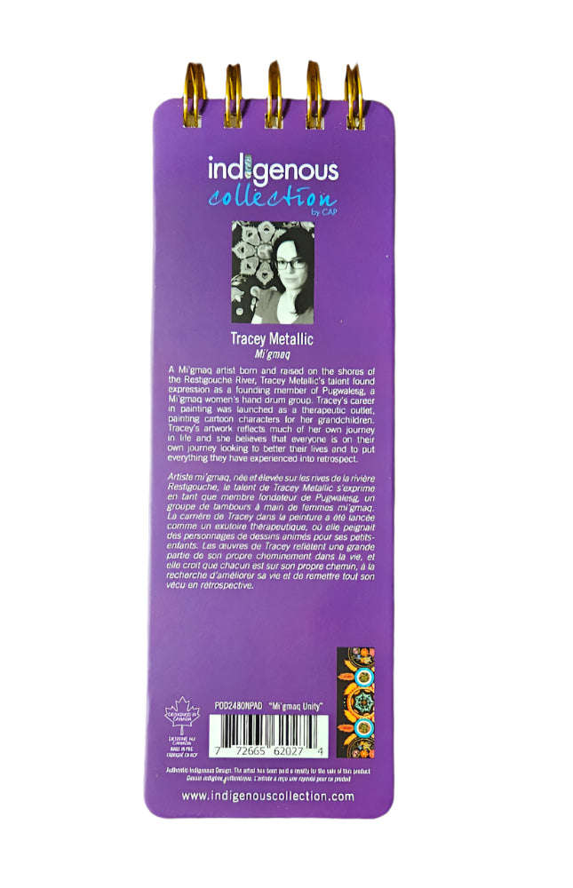 Everyone will be doing a double take when they see this unique, beautiful notepad "M'gmaq Unity" by Indigenous Artist Tracey Metallic.